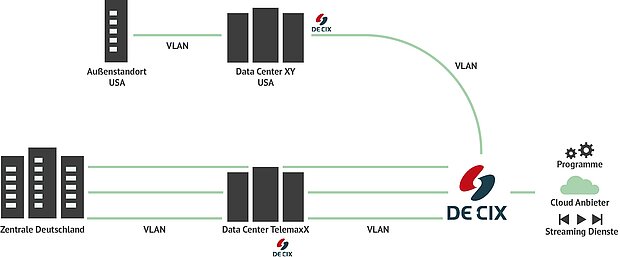 Der Betreiber des größten Internetknotens der Welt in Frankfurt am Main DE-CIX expandiert seit 2020 auf regionaler Ebene nach Karlsruhe. Die TelemaxX Telekommunikation GmbH ist "DE-CIX Enabled Site". TelemaxX stellt die Rechenzentrums-Infrastruktur zur Verfügung und vermarktet die DE-CIX Services. Damit sind die DE-CIX Interconnection Services wie DirectCLOUD und GlobePEER direkt am Standort Karlsruhe verfügbar. Über den Service DE-CIX Connect können Sie sich aus den Rechenzentren der TelemaxX direkt mit dem DE-CIX verbinden. DE-CIX Connect ist damit die Grundlage, um beliebige DE-CIX Services an der Enabled Site Karlsruhe zu konsumieren.